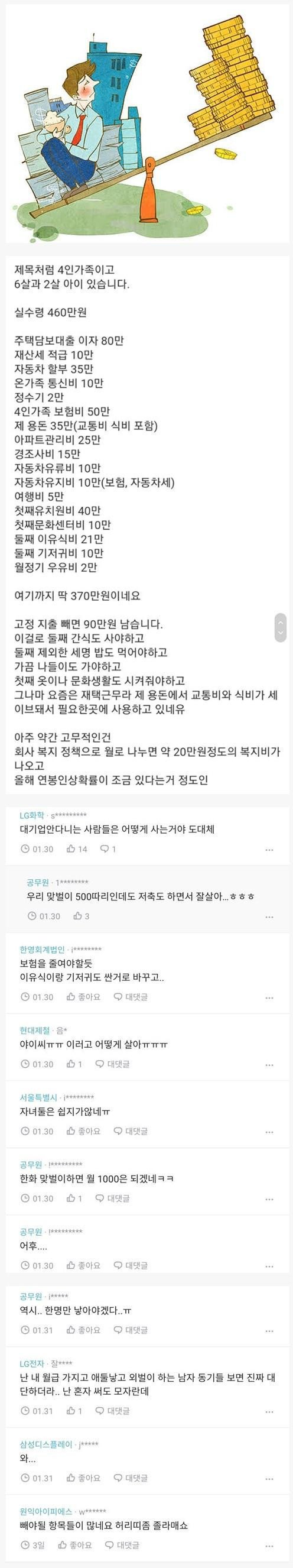 실수령 460 외벌이 현실
